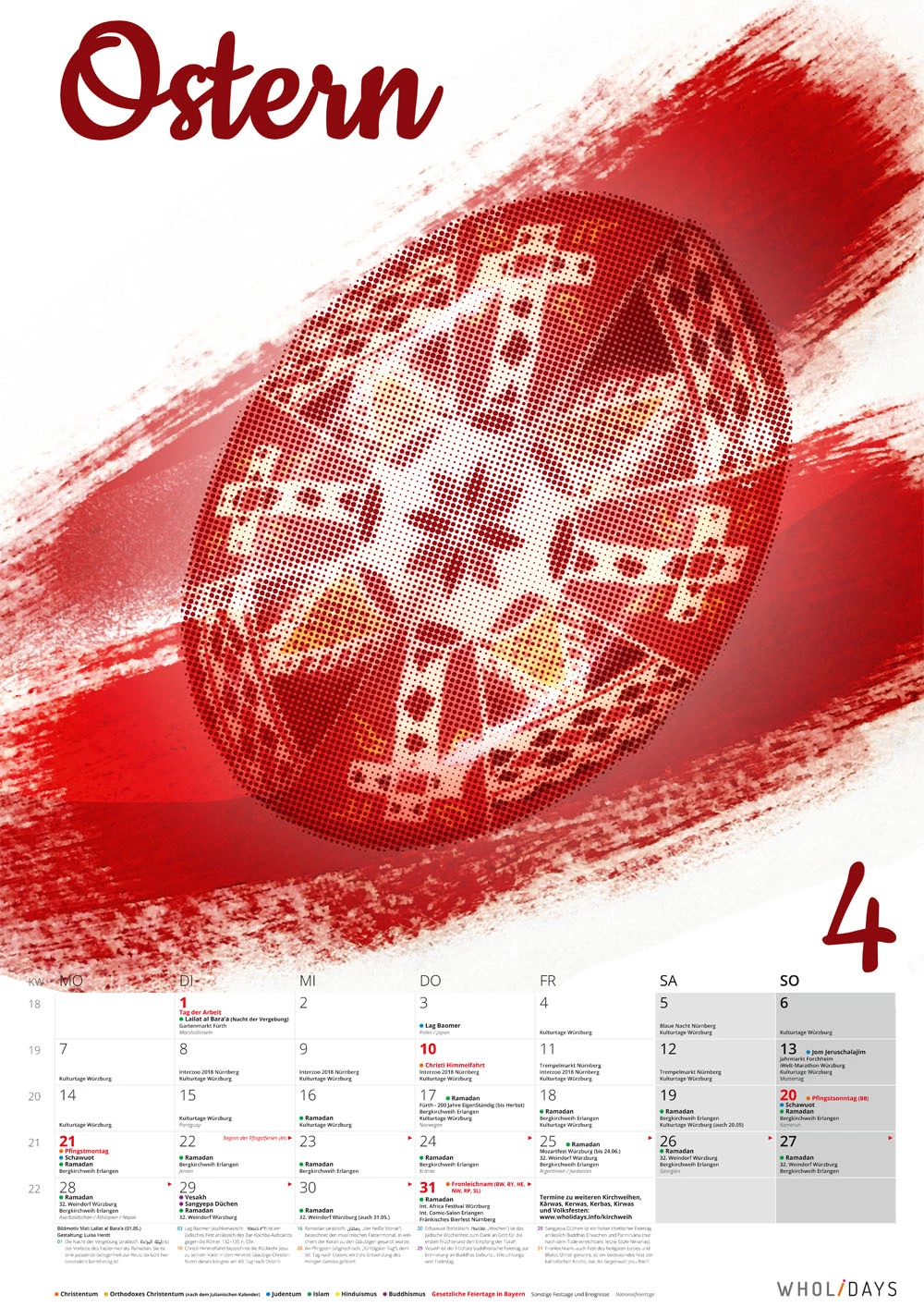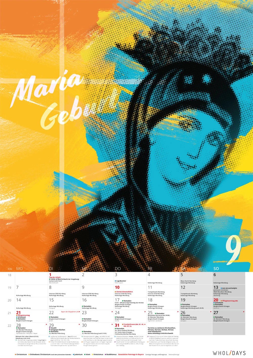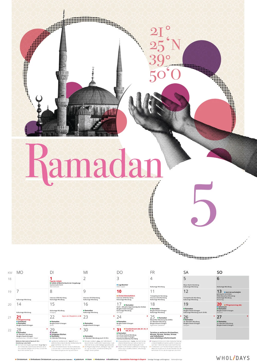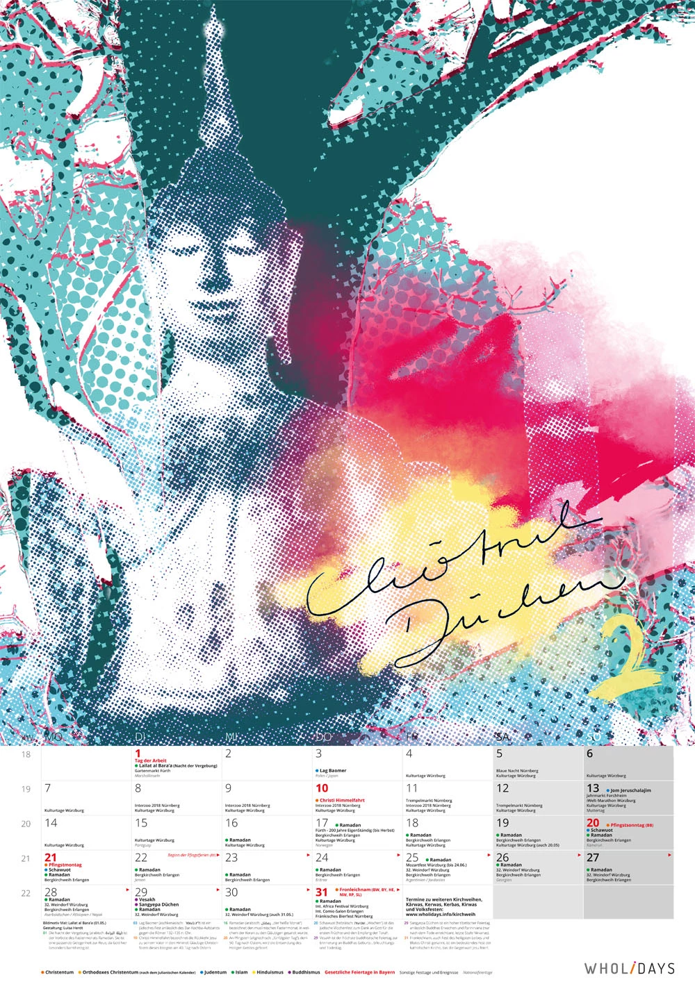 Der interkulturelle Kalender geht in die fünfte Runde! Gemeinsam mit Grafik-Design Studenten aus dem zweiten und vierten Semester der Akademie Faber-Castell ist es uns erneut gelungen, das bunte 21. Jahrhundert in einem Wandkalender mit einzigartigen Motiven einzufangen. Nachfolgend haben wir alle abgegebenen Entwürfe der Studenten chronologisch zusammengestellt.