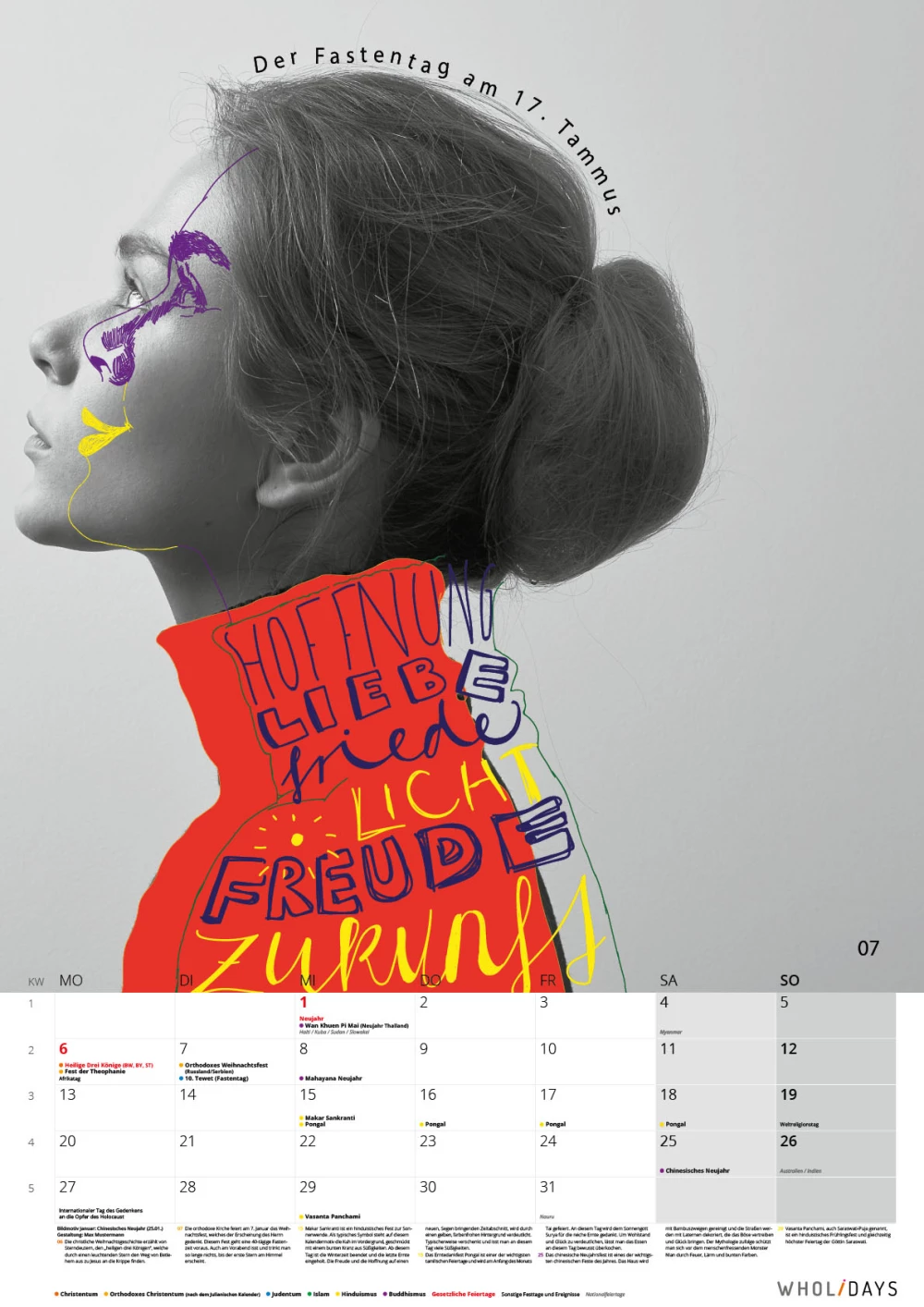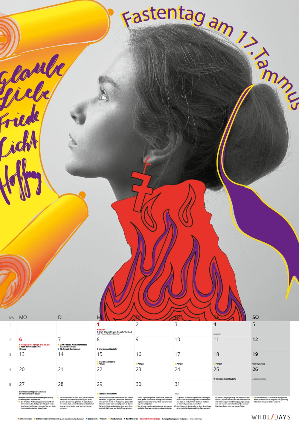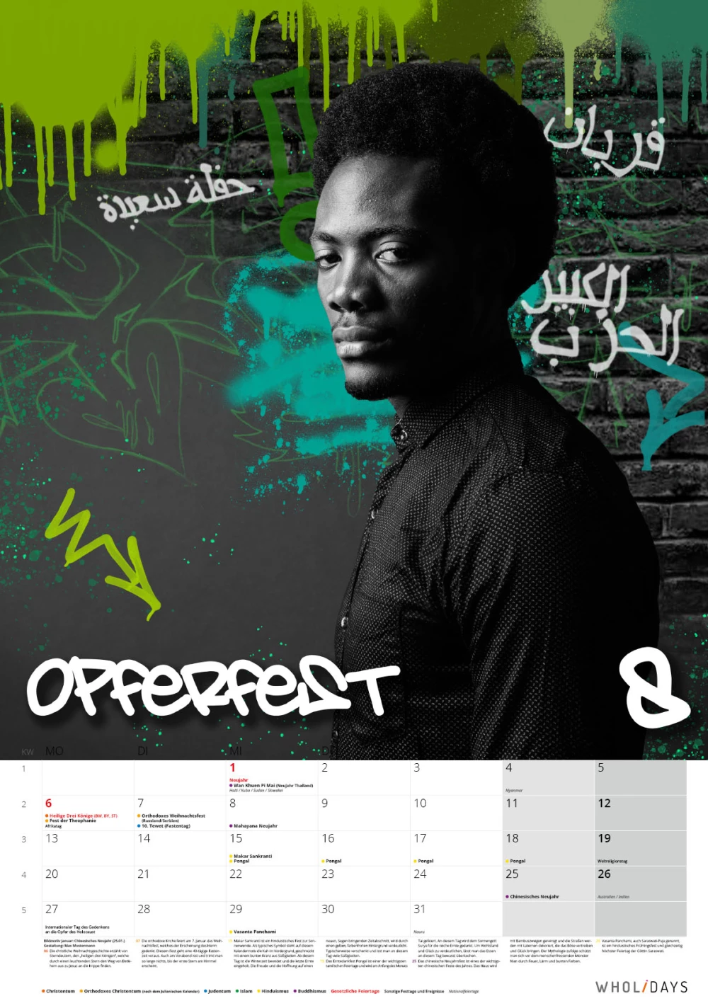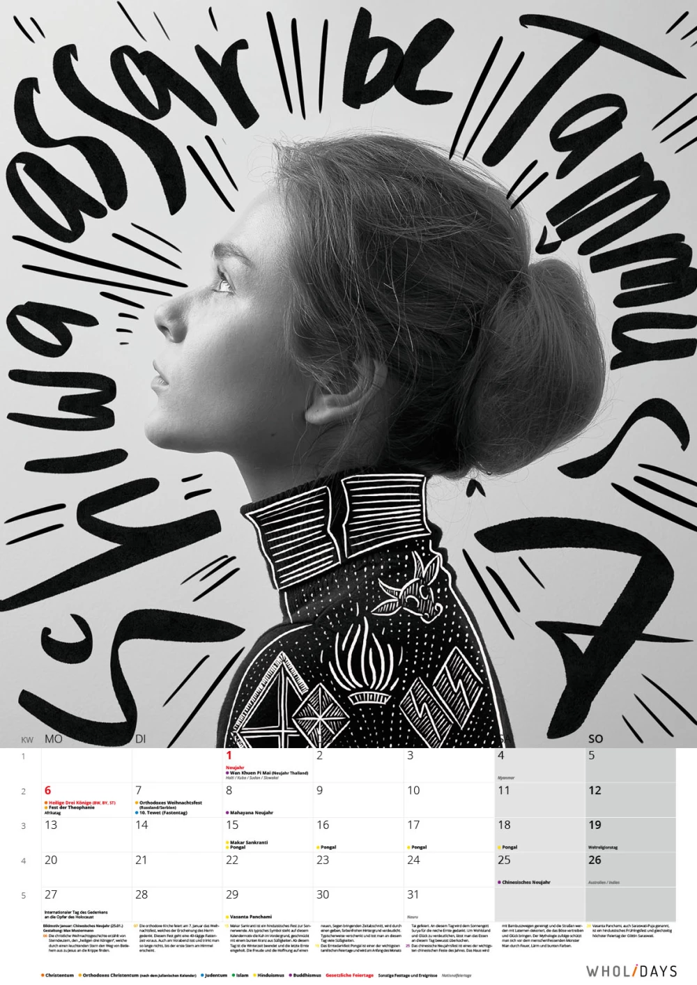 Der interkulturelle Kalender geht in die sechste Runde! Gemeinsam mit Grafik-Design Studenten aus dem zweiten und vierten Semester der Akademie Faber-Castell ist es uns erneut gelungen, das bunte 21. Jahrhundert in einem Wandkalender mit einzigartigen Motiven einzufangen. Nachfolgend haben wir alle abgegebenen Entwürfe der Studenten chronologisch zusammengestellt.