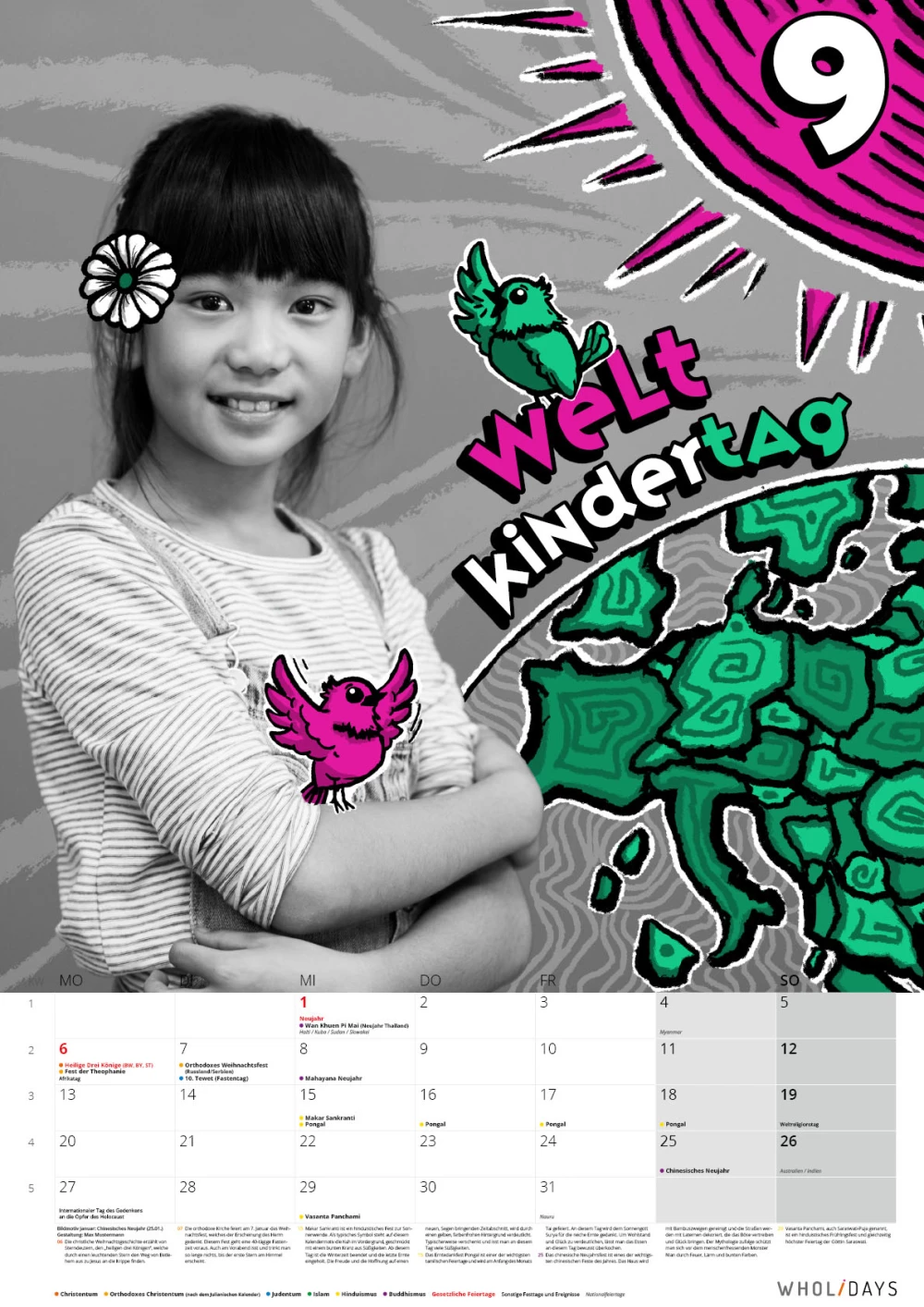 - Monat/Motiv: September – Interkulturelle Woche und Weltkindertag in Deutschland
