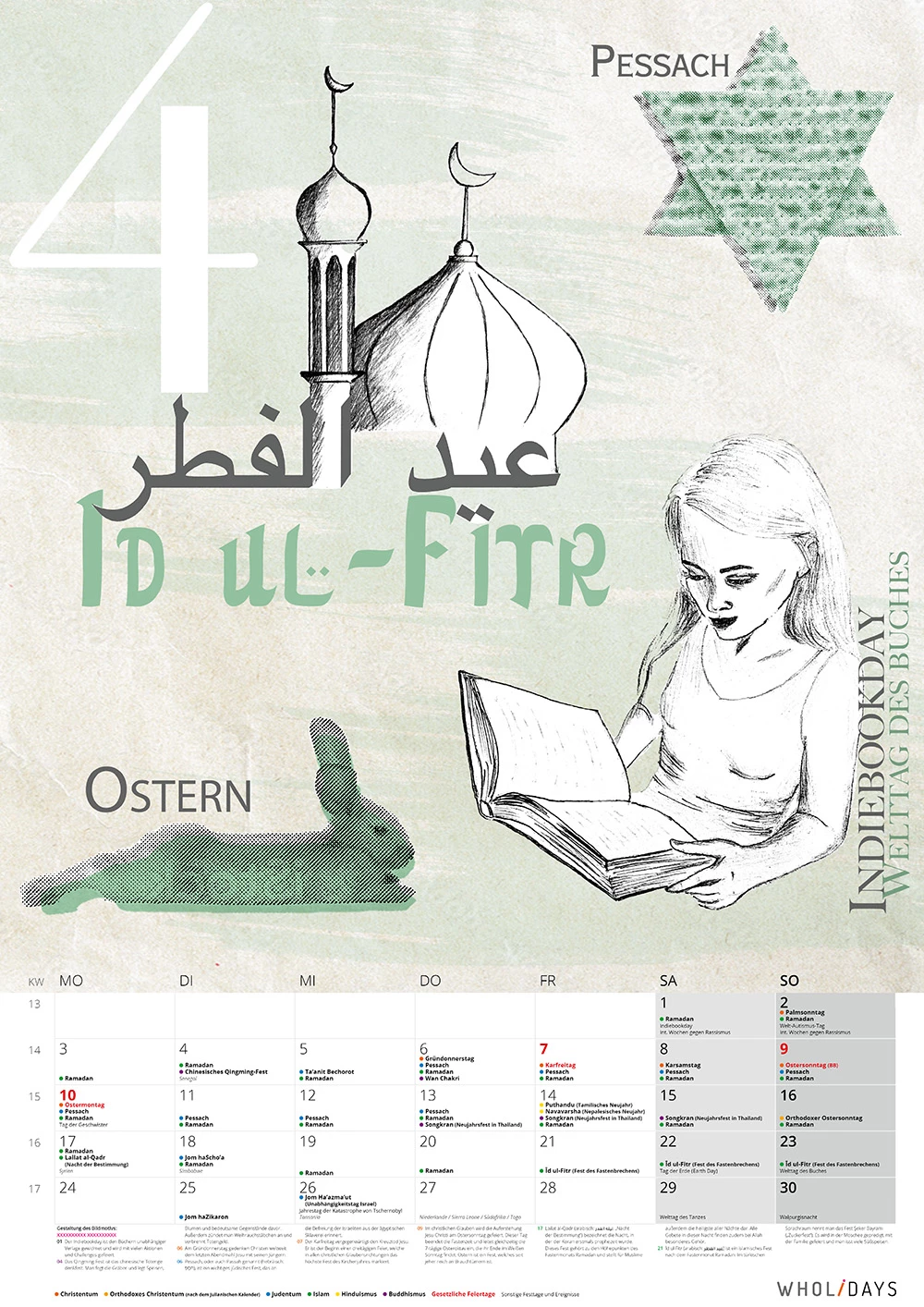 Īd ul-Fitr (Fest des Fastenbrechens) (Zuckerfest), Welttag des Buches / Indiebookday, orthodoxe Ostern, Pessach
