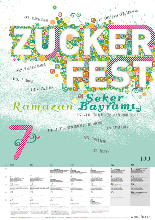wholidays, der interkulturelle Kalender 2015, Ausgabe Franken