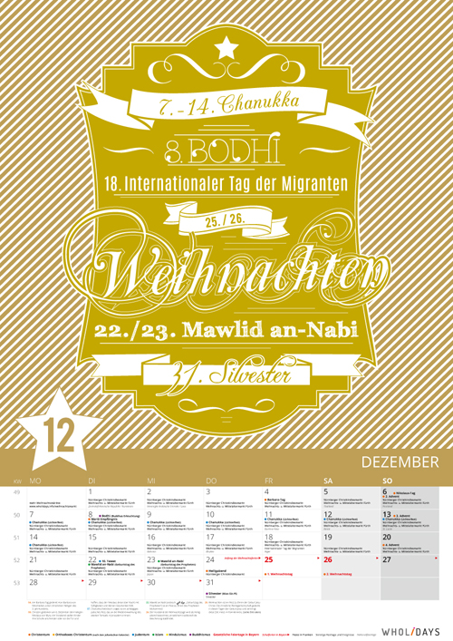 Das intuitive Kalendarium ermöglicht es, eine Vielzahl an Festivitäten mit einem modernen und ansprechenden Layout zu vereinen. Abgesehen vom Mehrwert bei der täglichen Informationsbeschaffung, bietet der interkulturelle Kalender eine hochwertige und zeitgemäße Gestaltung.