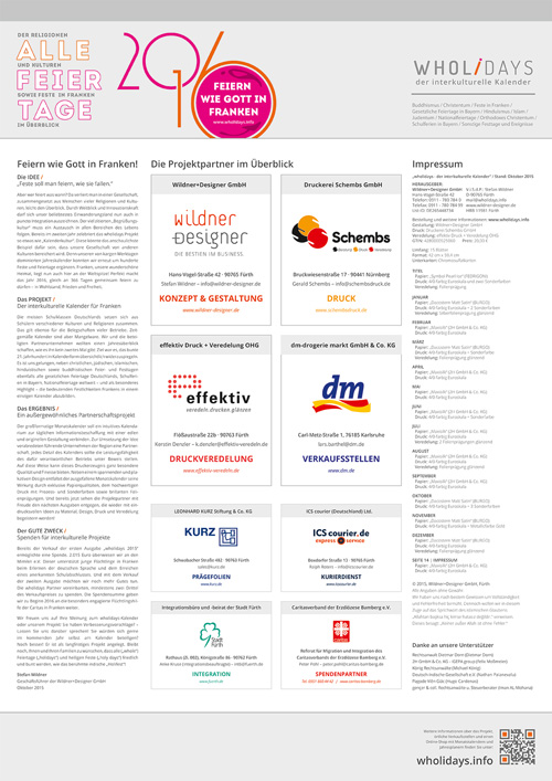 wholidays, der interkulturelle Kalender 2016, Ausgabe Franken