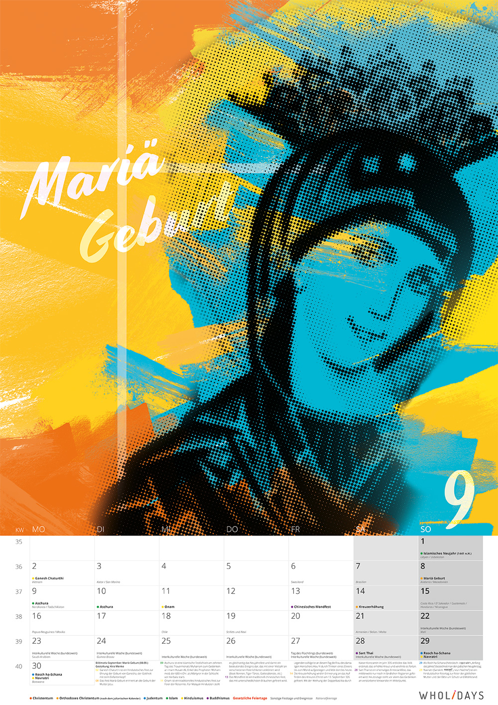 Enthalten: Buddhismus / Christentum / Gesetzliche Feiertage / Hinduismus / Islam / Judentum / Nationalfeiertage / Orthodoxes Christentum / Sonstige Festtage und Ereignisse