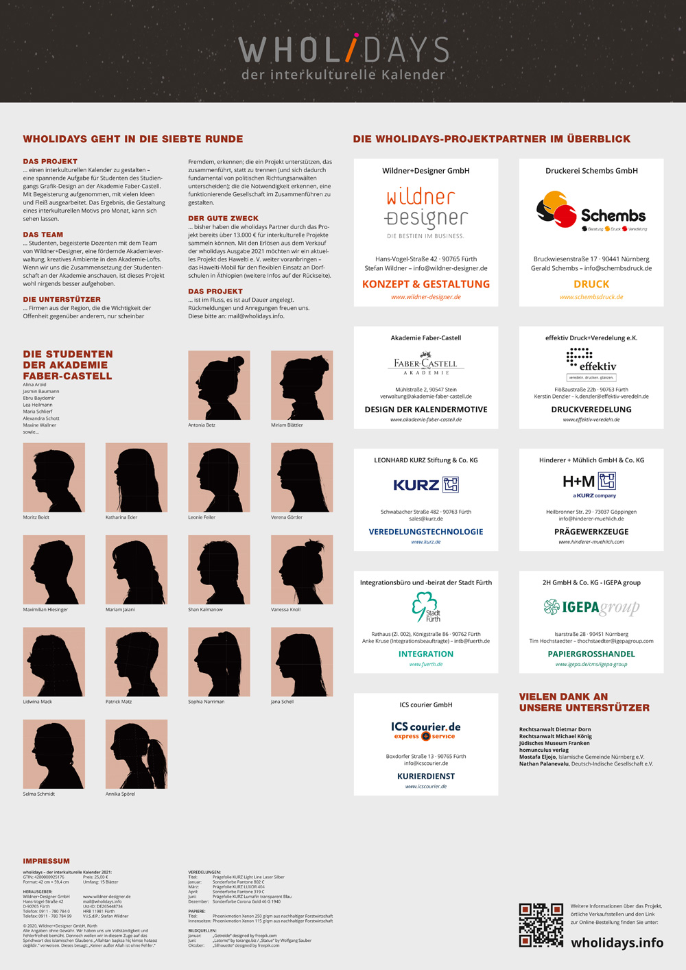 Das intuitive Kalendarium ermöglicht es, eine Vielzahl an Festivitäten mit einem modernen und ansprechenden Layout zu vereinen. wholidays 2021 setzt dabei erneut auf eine Kooperation mit der in Stein b. Nürnberg ansässigen Akademie Faber-Castell.