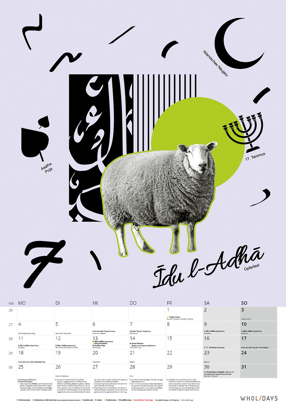 - Bildmotiv: Īd ul-Adhā (Opferfest), Asalha Puja, 17. Tammus (Fasttag), Islamisches Neujahr (1441 n.H.)