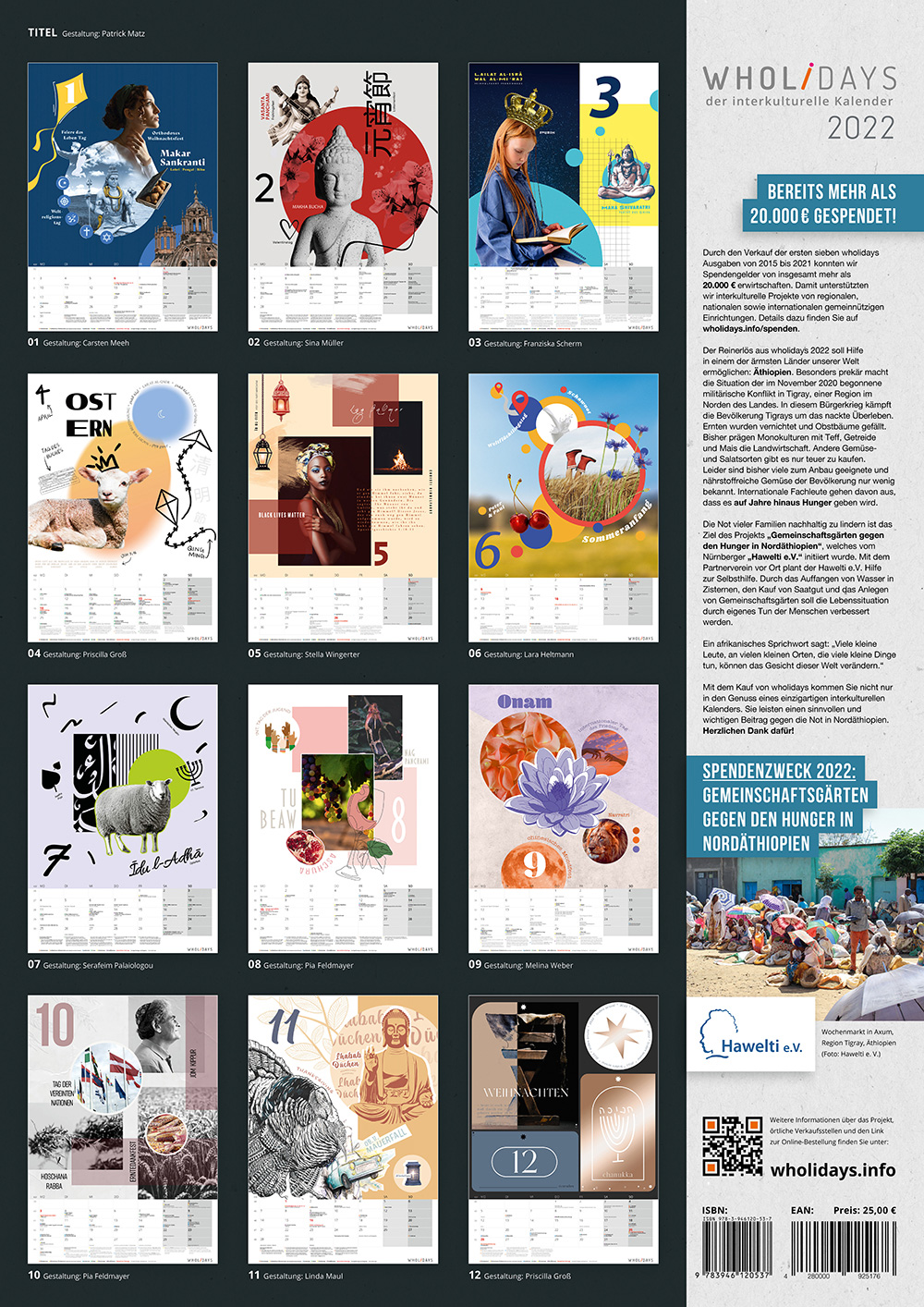 Das intuitive Kalendarium ermöglicht es, eine Vielzahl an Festivitäten mit einem modernen und ansprechenden Layout zu vereinen. wholidays 2022 setzt dabei erneut auf eine Kooperation mit der in Stein b. Nürnberg ansässigen Akademie Faber-Castell.