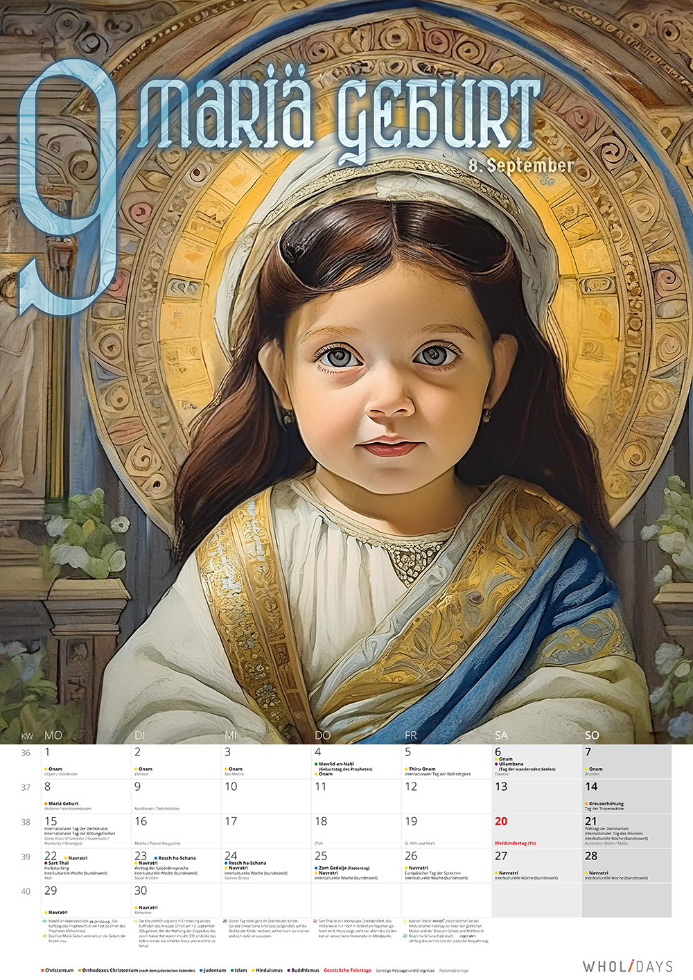 Enthalten: Buddhismus / Christentum / Gesetzliche Feiertage / Hinduismus / Islam / Judentum / Nationalfeiertage / Orthodoxes Christentum / Sonstige Festtage und Ereignisse