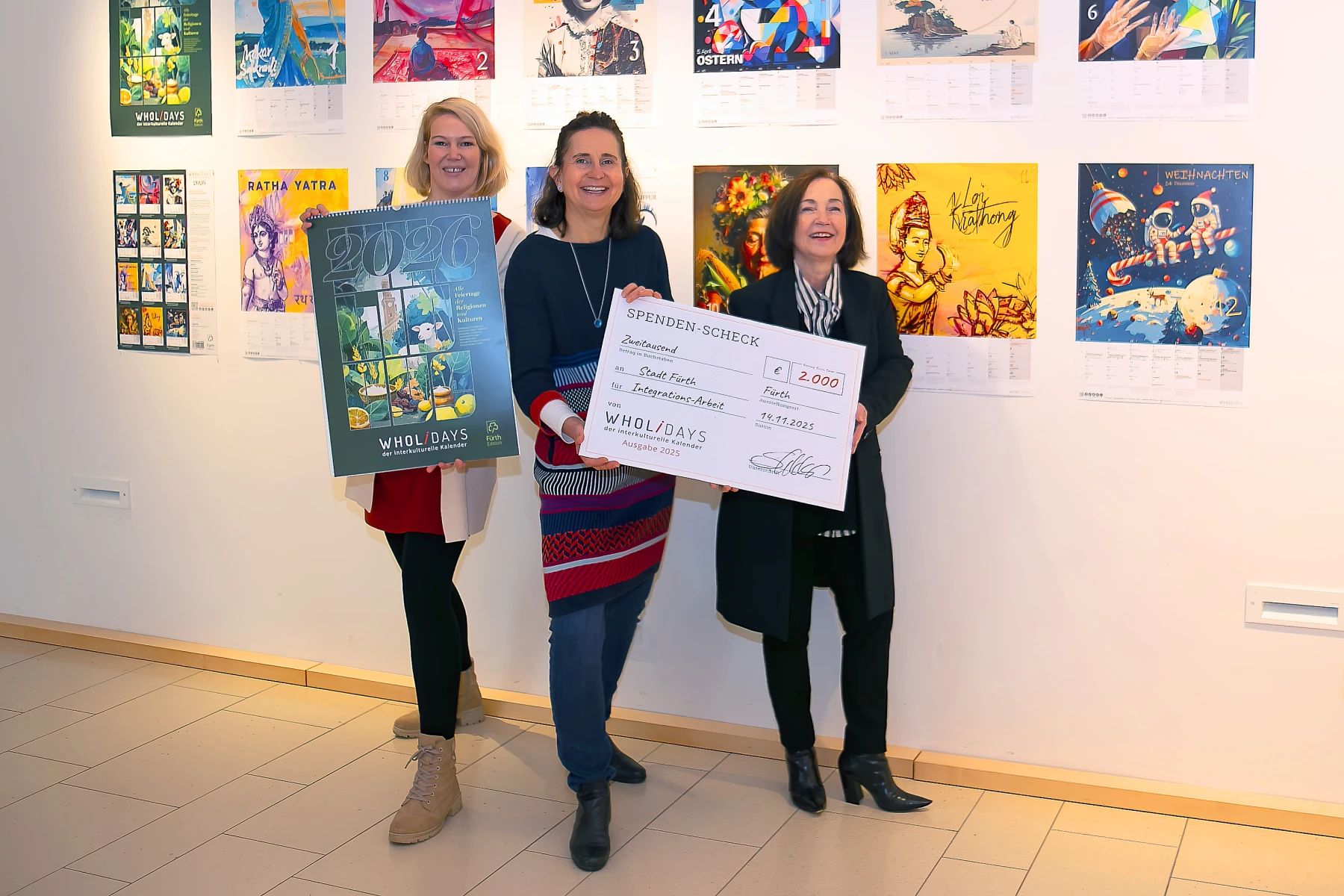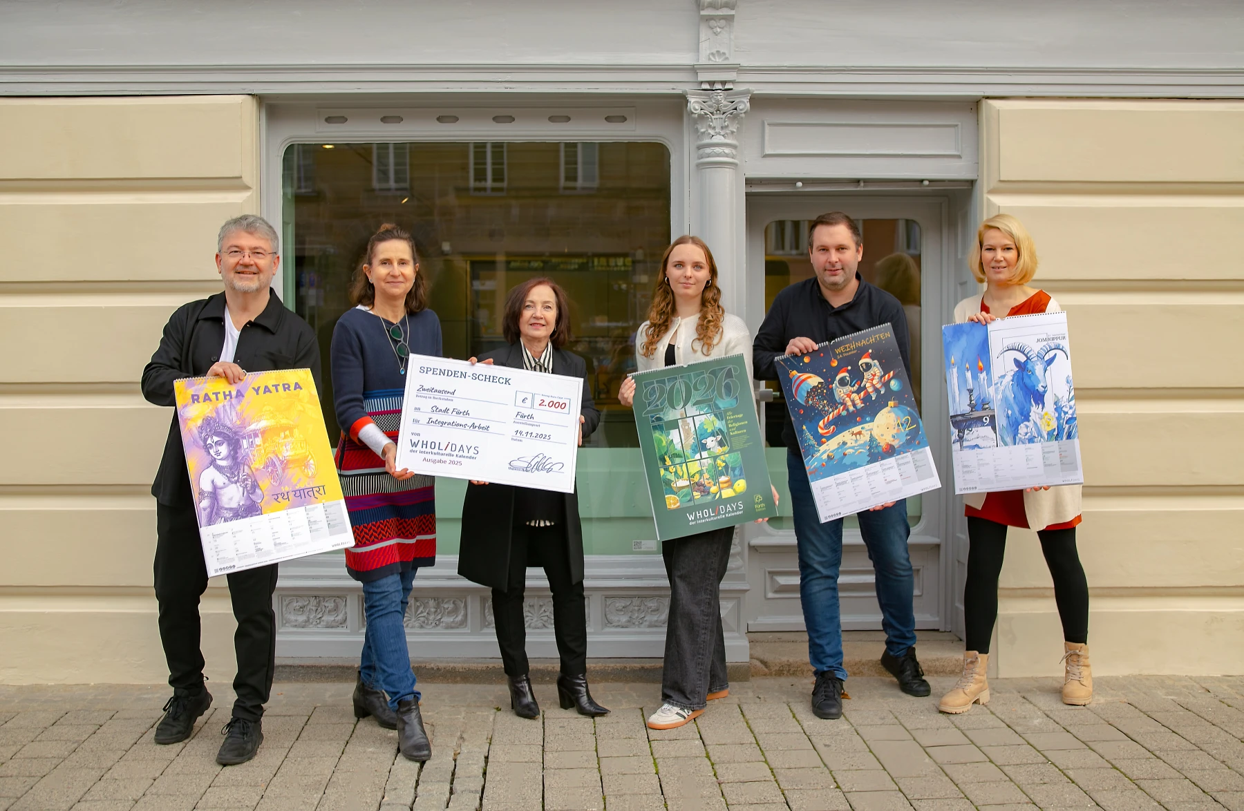 Aus dem Verkauf der vorangegangenen Ausgabe 2025 ergab sich ein Reinerlös von 2.000 €. Wie in den letzten Jahren wurde auf dem Pressetermin zur Vorstellung der neuen Ausgabe ein entsprechender Spendenscheck überreicht. Der Betrag soll der Integrations-Arbeit der Stadt Fürth zugutekommen.