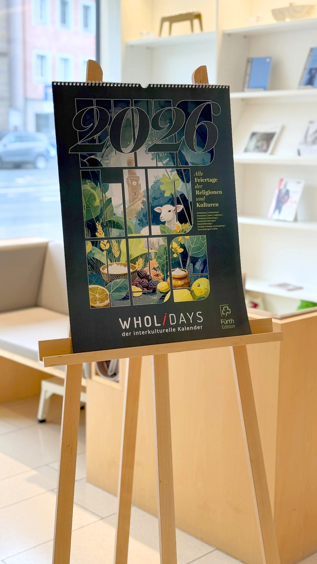 Nun entwickelten wir die Idee, zusätzlich zur überregionalen Ausgabe eine eigene „Fürth-Edition“ zu wholidays 2026 aufzulegen. Die interkulturellen Feste der Religionen und Kulturen werden in dieser Ausgabe durch die geplanten Veranstaltungen der Stadt Fürth in 2026 ergänzt. So können die weltoffenen Fürther alle wichtigen Termine im Auge behalten – von Makar Sakranti, dem hinduistischen Fest zur Sonnenwende bis zum Weihnachtsmarkt auf der Fürther Freiheit.